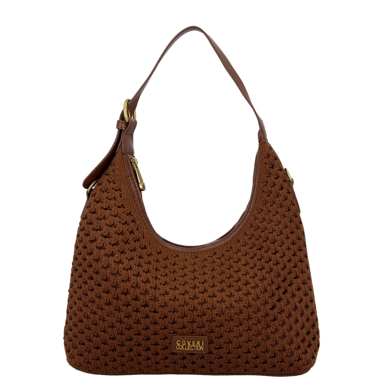 Stylová dámská háčkovaná kabelka Coveri Luna, tmavě hnědá