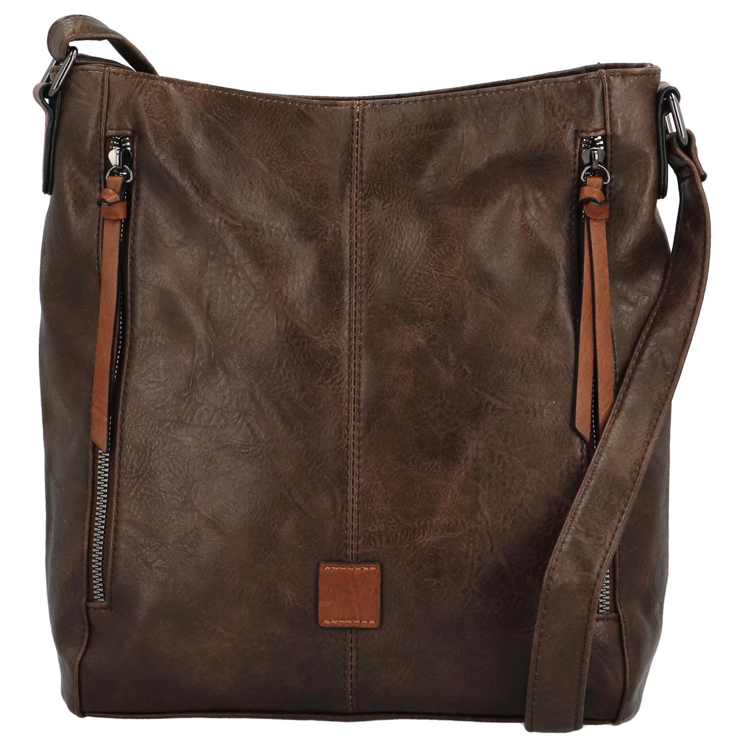 Krásná větší crossbody kabelka, která vás zaujme praktickými svislými kapsami na přední straně, do kterých vložíte to co potřebujete mít po ruce. V zadní části také zipová kapsička. Hlavní kapsa je na zip a uvnitř dostatek místa pro vaše věci a boční kapsičky v podšívce.