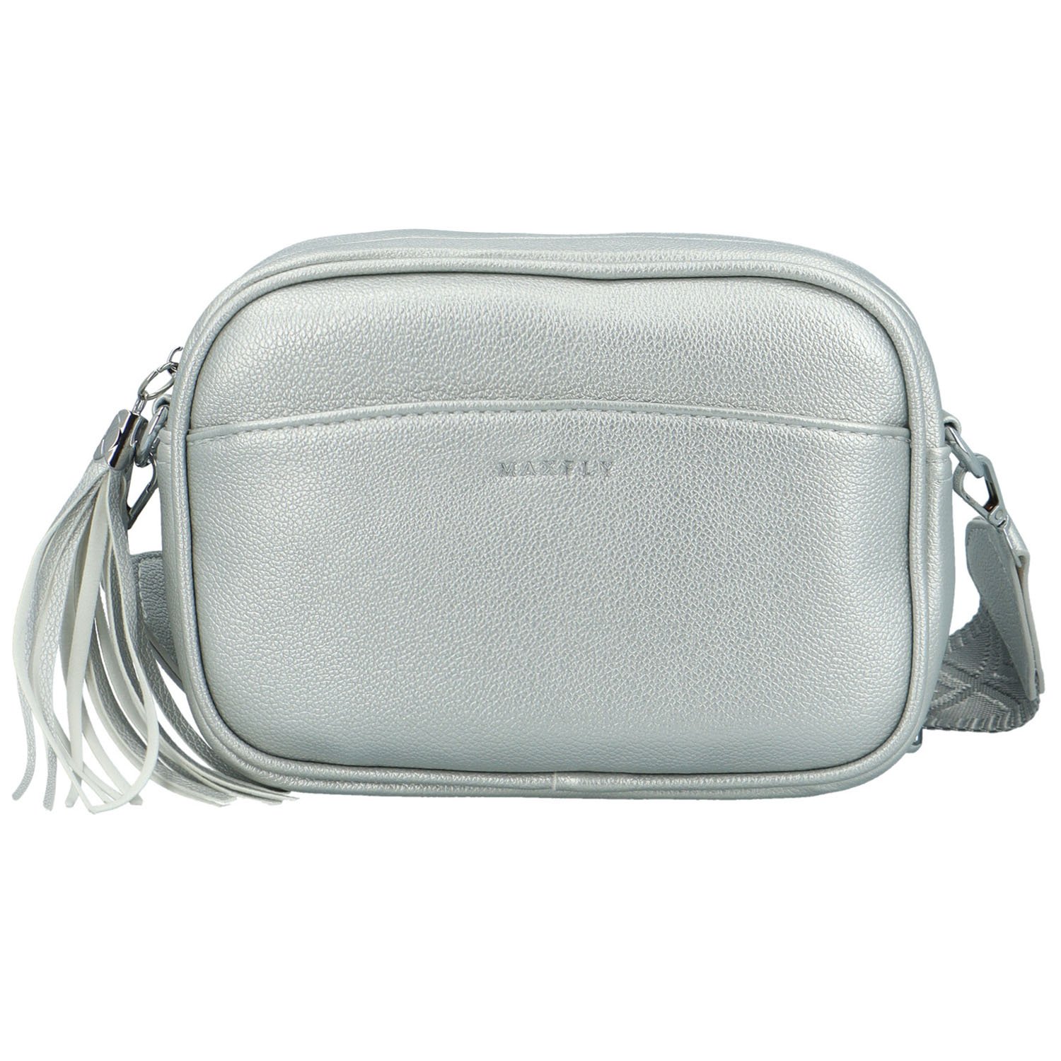 Stylová dámská koženková crossbody MaxFly Rozana, stříbrná