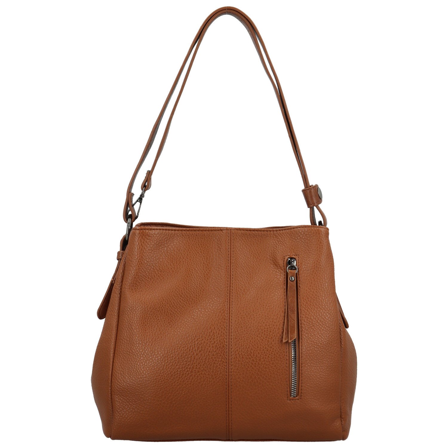 Na první pohled upoutá kontrastní hnědý popruh, jenž je nejen stylovým doplňkem, ale i praktickým prvkem, díky karabině jej lze prodloužit a kabelku pohodlně nosit také do kříže.Přední stranu zdobí jemné prošití a svislá zipová kapsa na drobnosti.