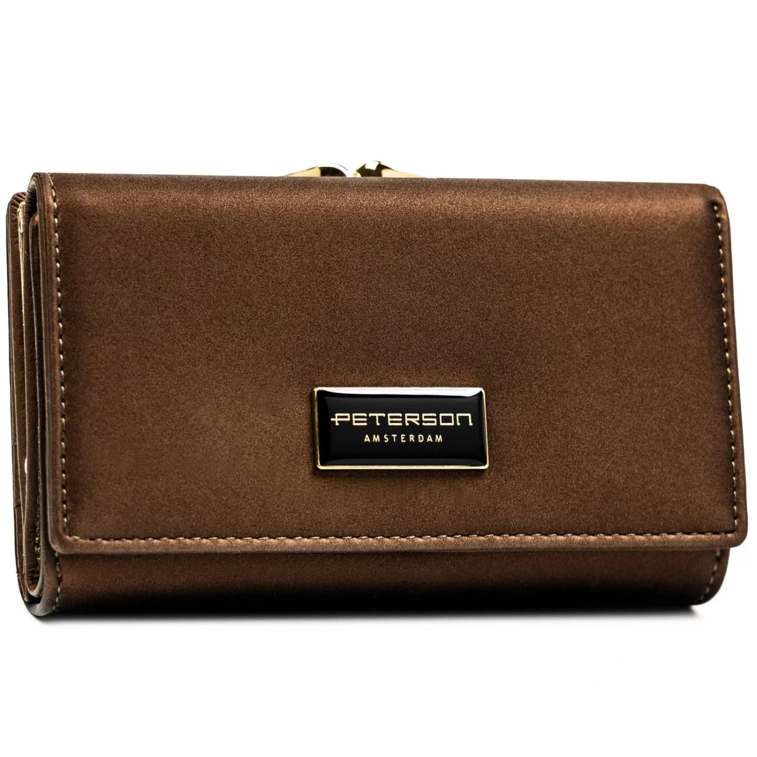 Tato kompaktní koženkovo-kožená peněženka je ideálním doplňkem pro ženy, které chtějí elegantní vzhled a zároveň maximální praktičnost. Vnější část je vyrobena ze syntetického materiálu, který je odolný, hladký a krásně drží tvar. Přední stranu zdobí stylové logo značky umístěné na klopě.