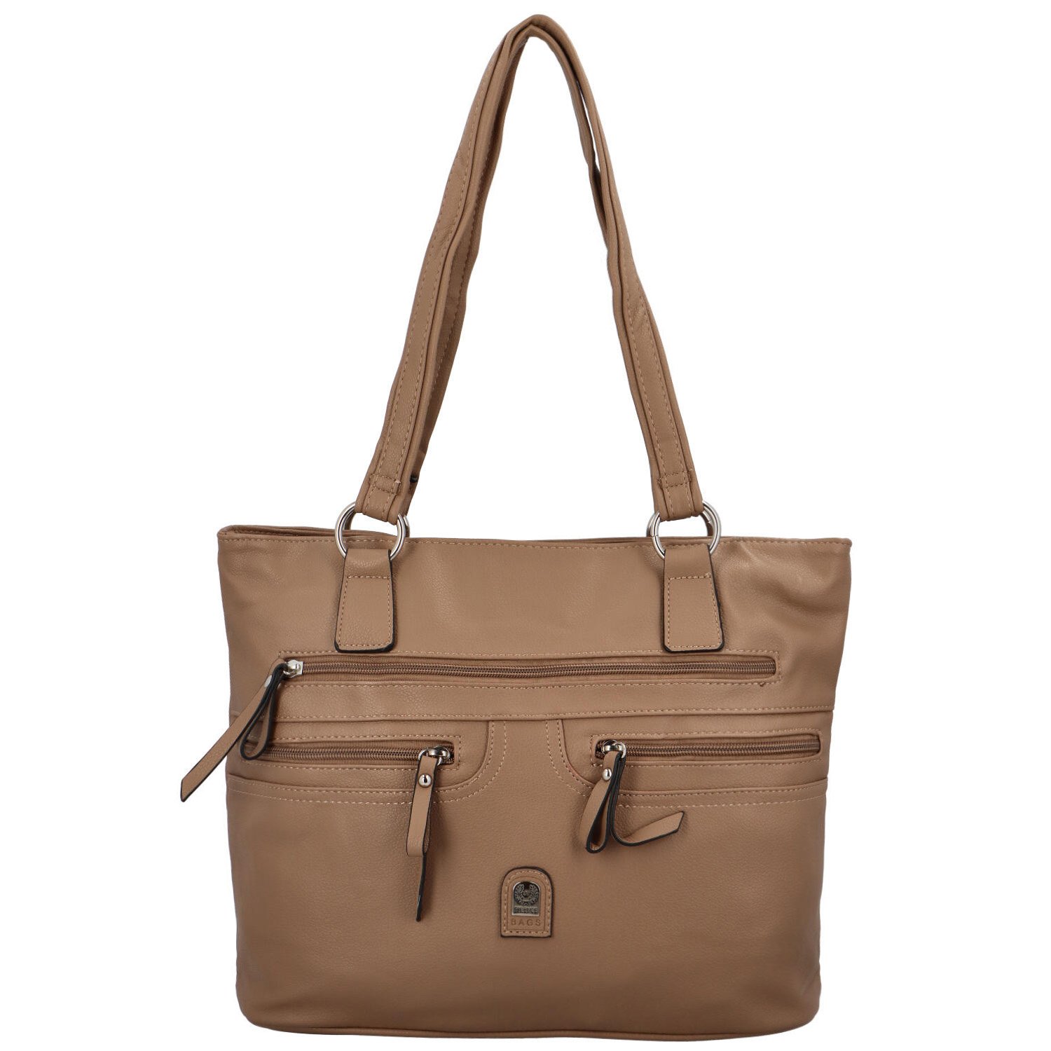 Dámská kabelka je velice praktická. Kabelka přes rameno má hned dvě hlavní kapsy zabezpečené zipem, uvnitř najdeme menší boční kapsičky v podšívce z nichž jedna je na zip.Kabelka disponuje v přední části dalšíma třema kapsičkama na zip a i v zadní části je kapsa na zip..