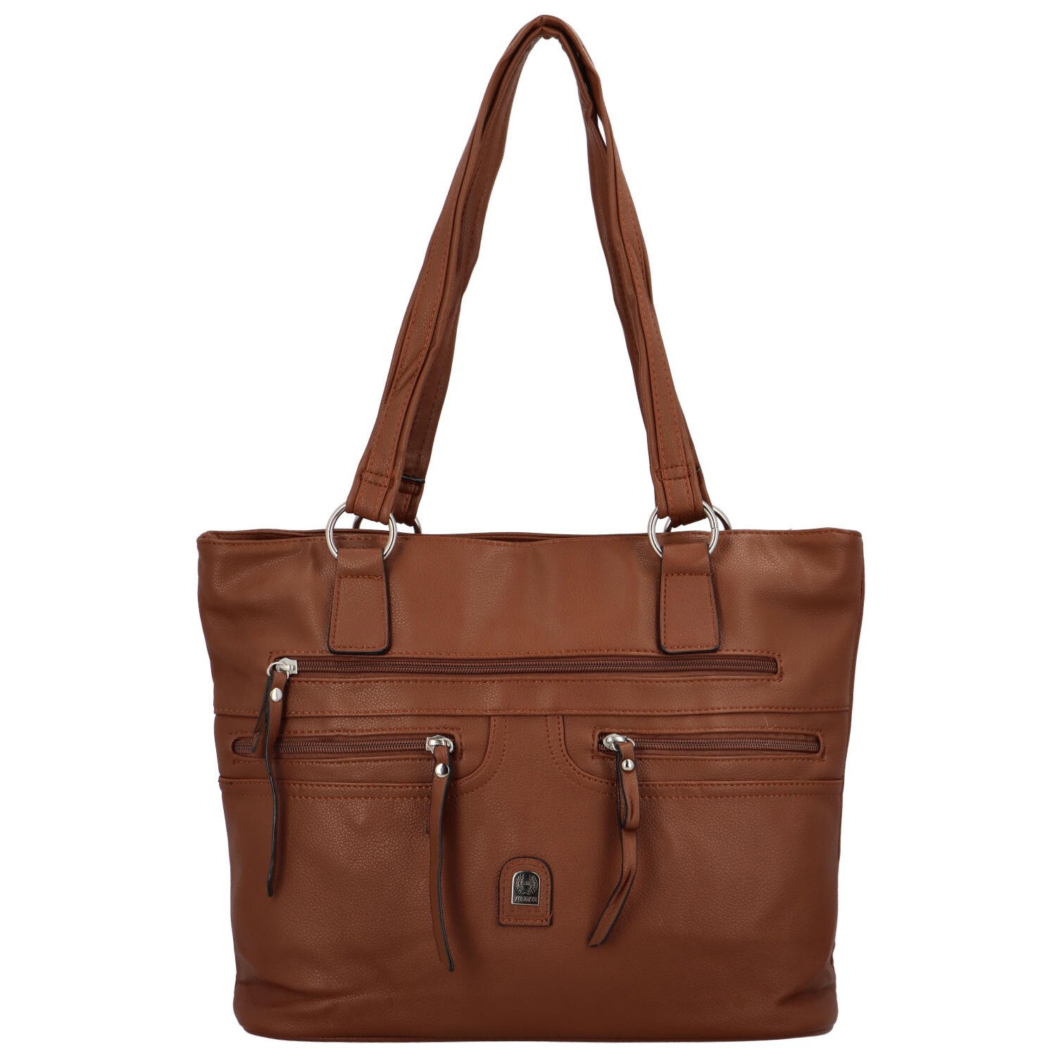 Dámská kabelka je velice praktická. Kabelka přes rameno má hned dvě hlavní kapsy zabezpečené zipem, uvnitř najdeme menší boční kapsičky v podšívce z nichž jedna je na zip.Kabelka disponuje v přední části dalšíma třema kapsičkama na zip a i v zadní části je kapsa na zip..