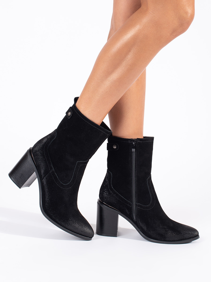 Stylové kotníčkové boty černé dámské na širokém podpatku 38