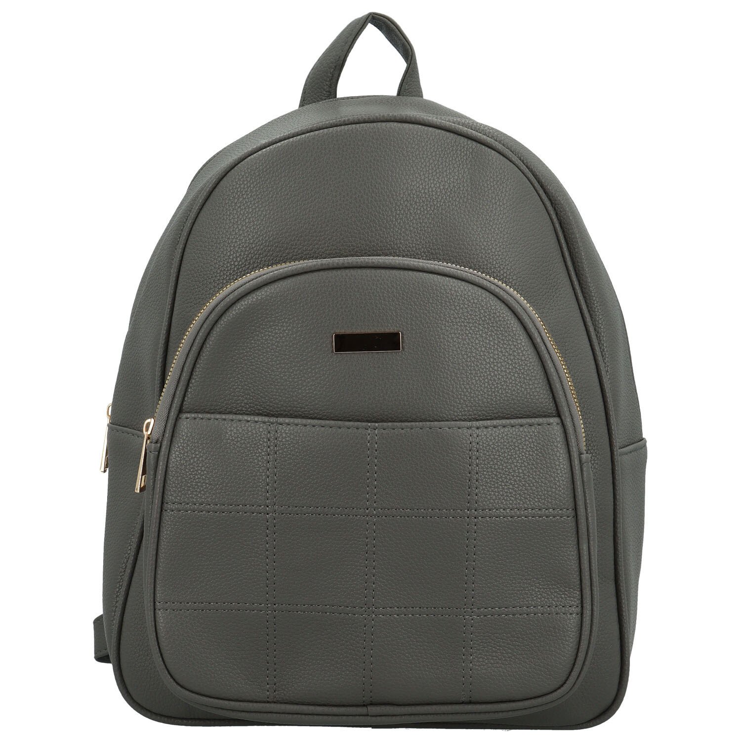 Jeho zaoblený tvar působí moderně a nadčasově. Přední stranu zdobí vypouklá kapsa na zip a na ní je malá kapsička s jemným prošíváním ve tvaru drobných čtverečků, které dodává designu decentní ozdobný prvek.