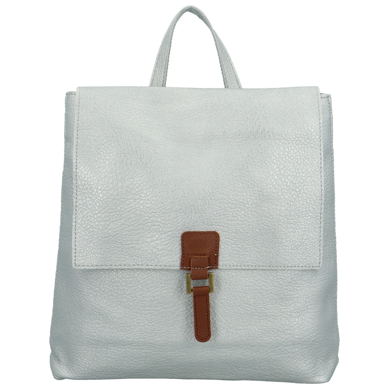 Stylový dámský koženkový kabelko-batoh Octtavius, stříbrný