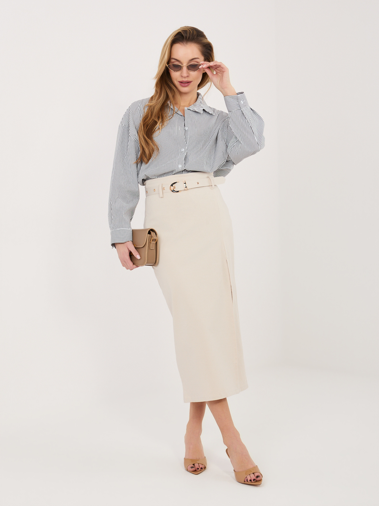 Modelka má na sobě velikost S/M. Míry modelky: výška 169 cm, poprsí 88 cm, pas 68 cm, boky 89 cm. Mezinárodní velikostiVýškaObvod pasuS/M36/38160-17272-86L/XL40/42164-17884-96