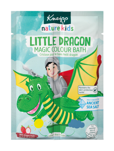 Koupel Dračí síla od Kneipp® zbarví vodu a udělá z koupání dobrodružství pro malé hrdiny. Obsahuje přírodní extrakt z dračího ovoce, extrakt z vilínu a jojobový olej. Pečuje o jemnou dětskou pokožku a chrání ji před vysoušením. Objevte barevné kouzlo - žlutá a modrá se ve vodě změní na zelenou. Koupání se stane hrou a přinese zážitek pro dětské smysly. Produkty Kneipp® Naturkind jsme s láskou vyvinuli speciálně pro děti. Kombinují jemnou péči o pokožku a zábavu. Koupel je vhodná pro děti od 3 let.