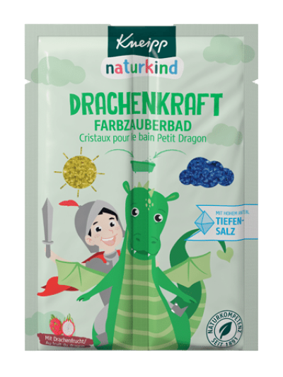 Koupel Dračí síla od Kneipp® zbarví vodu a udělá z koupání dobrodružství pro malé hrdiny. Obsahuje přírodní extrakt z dračího ovoce, extrakt z vilínu a jojobový olej. Pečuje o jemnou dětskou pokožku a chrání ji před vysoušením. Objevte barevné kouzlo - žlutá a modrá se ve vodě změní na zelenou. Koupání se stane hrou a přinese zážitek pro dětské smysly. Produkty Kneipp® Naturkind jsme s láskou vyvinuli speciálně pro děti. Kombinují jemnou péči o pokožku a zábavu. Koupel je vhodná pro děti od 3 let.
