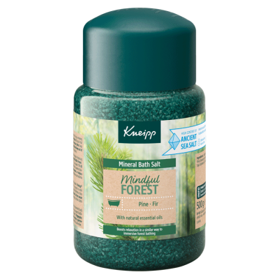 Kneipp® koupelová sůl Mindful forest je obohacena o esenciální oleje z borovice a jedle, které zklidní vaši mysl a pomohou uvolnit napjaté svaly po náročném dni. Účastníci laboratorního testu uvádějí, že koupel s touto solí navozuje pocit, jako když se právě procházíte v lese*. (* uvádí 91 % z celkového počtu 77 dotazovaných) Sůl do koupele Kneipp® obsahuje vysoký podíl čistě přírodní soli z termální solanky. Ta se získává v solném dole Saline Luisenhall, který je posledním takovým dolem v provozu v Evropě. Termální solanka se čerpá z usazenin soli 250 milionů let starého pramoře, a to v hloubce 460 metrů. Přírodní čistá solanka neobsahuje chemické přísady a je šetrná k životnímu prostředí.
