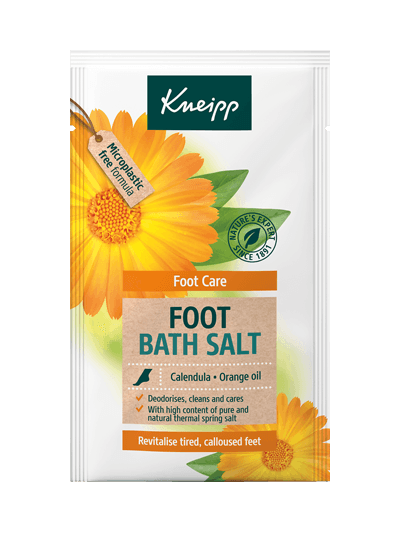 Dopřejte sobě a svým nohám po namáhavém dni uvolňující koupel nohou! Citrusová vůně s přírodním éterickým pomerančovým olejem vitalizuje smysly a osvěžuje. Sůl do koupele na chodidla Kneipp obsahující čistě přírodní sůl z termální solanky, která jemně očistí vaše unavené a namožené nohy, dezodoruje je a změkčí zrohovatělou kůži.