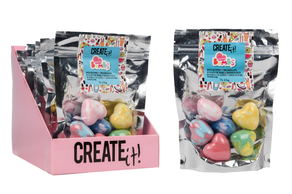 Šumivé bomby do vany – srdíčka do koupele. Každý sáček obsahuje 7 bomb do koupele ve tvaru srdíček Naplňte vanu vodou a poté na dno umístěte koupelovou bombu. Sledujte, jak koupelová bomba začne bublat! Voda z koupele se nejen promění v zářivé barvy, ale také opravdu krásně voní! Dermatologicky testováno, odpovídá normám EU.