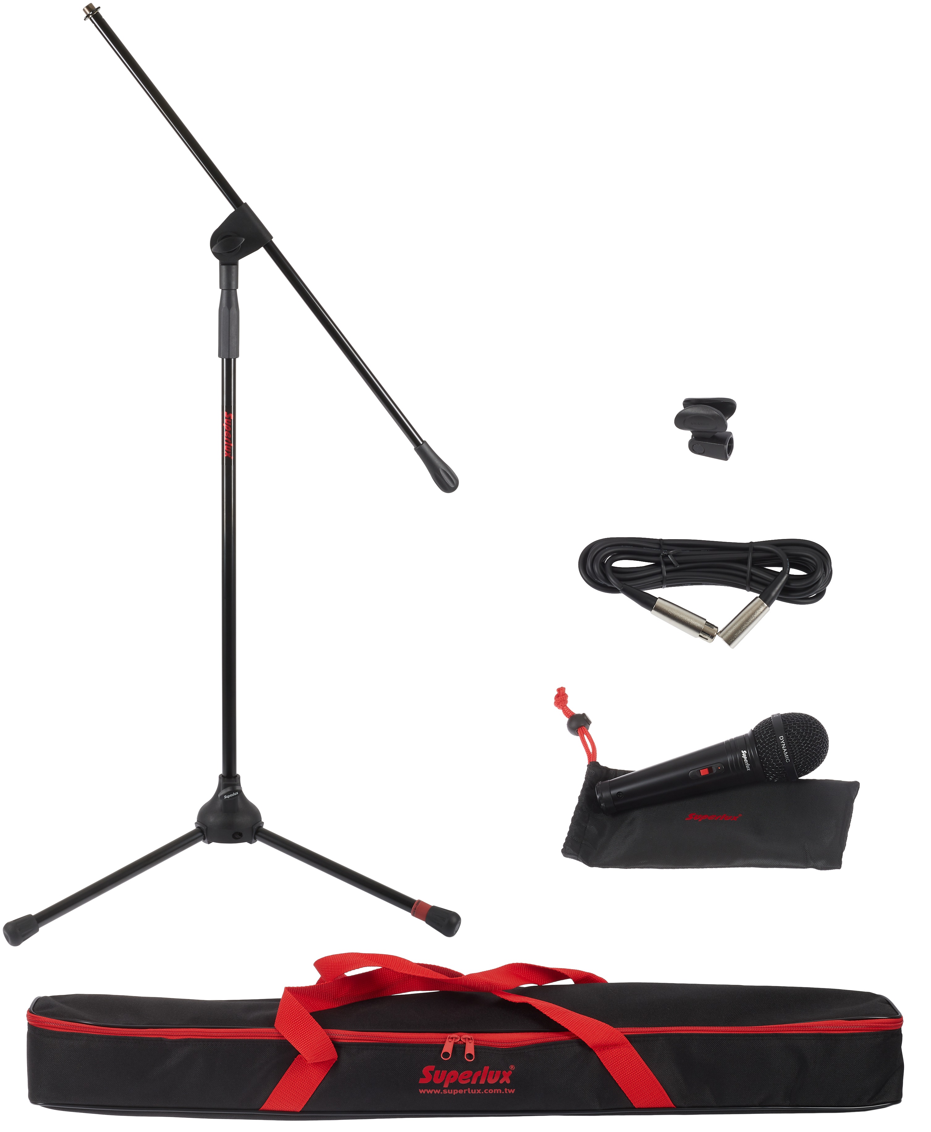Dynamický mikrofonní set MSKA od Superlux je kompletní vokální set. V balení najdete mikrofon ECO-A, kvalitní mikrofonní stojan MS108E, mikrofonní objímku, 6 m XLR kabel, mikrofonní obal a obal na tuto veškerou výbavu.