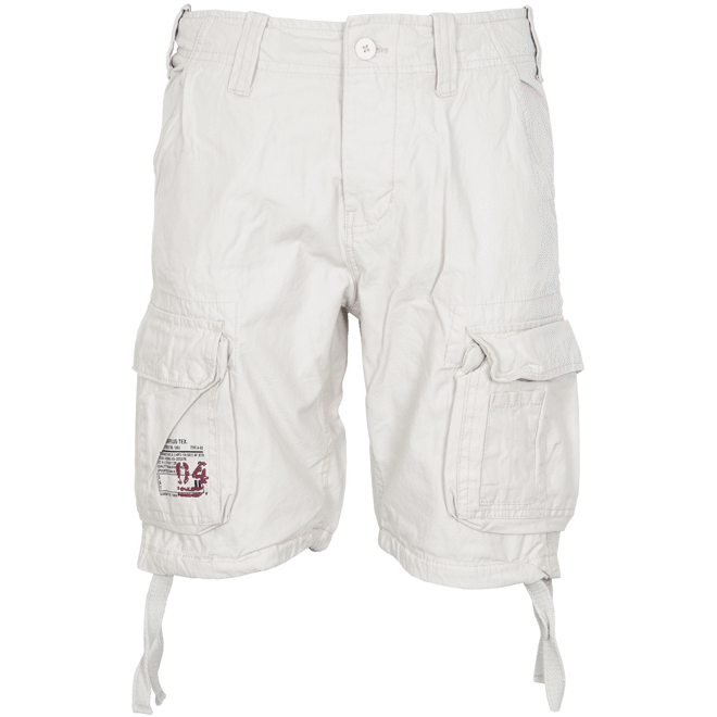Praktické krátké kalhoty zhotovené ve stylu leteckého oblečení (airborne) Pohodlný volný střih se širší nohavicí - ideální pro volný čas i běžné nošení. Celkem 6 kapes se zesíleným prošíváním kolem nejnamáhanějších částí: dvě hluboké kapsy vpředu na bocích se šikmými vstupy dvě vakové kapsy vzadu s patkami zapínanými na druky dvě vakové kapsy na bocích stehen s patkami zapínanými na druky Šířku nohavic na dolním konci lze upravit stahovací tkanicí. V pase je možné použít opasek (do šíře 5 cm) nebo stáhnout tkanicí. Zapínání poklopce na knoflíky. Uvnitř vzadu v pase užitečné poutko pro zavěšení např. při sušení. Moderní, "lehce opraný" vzhled (angl. vintage = starý, starodávný), který je zajištěn přímo z výroby (kalhoty jsou nové, ne použité). Materiál: 100 % bavlna