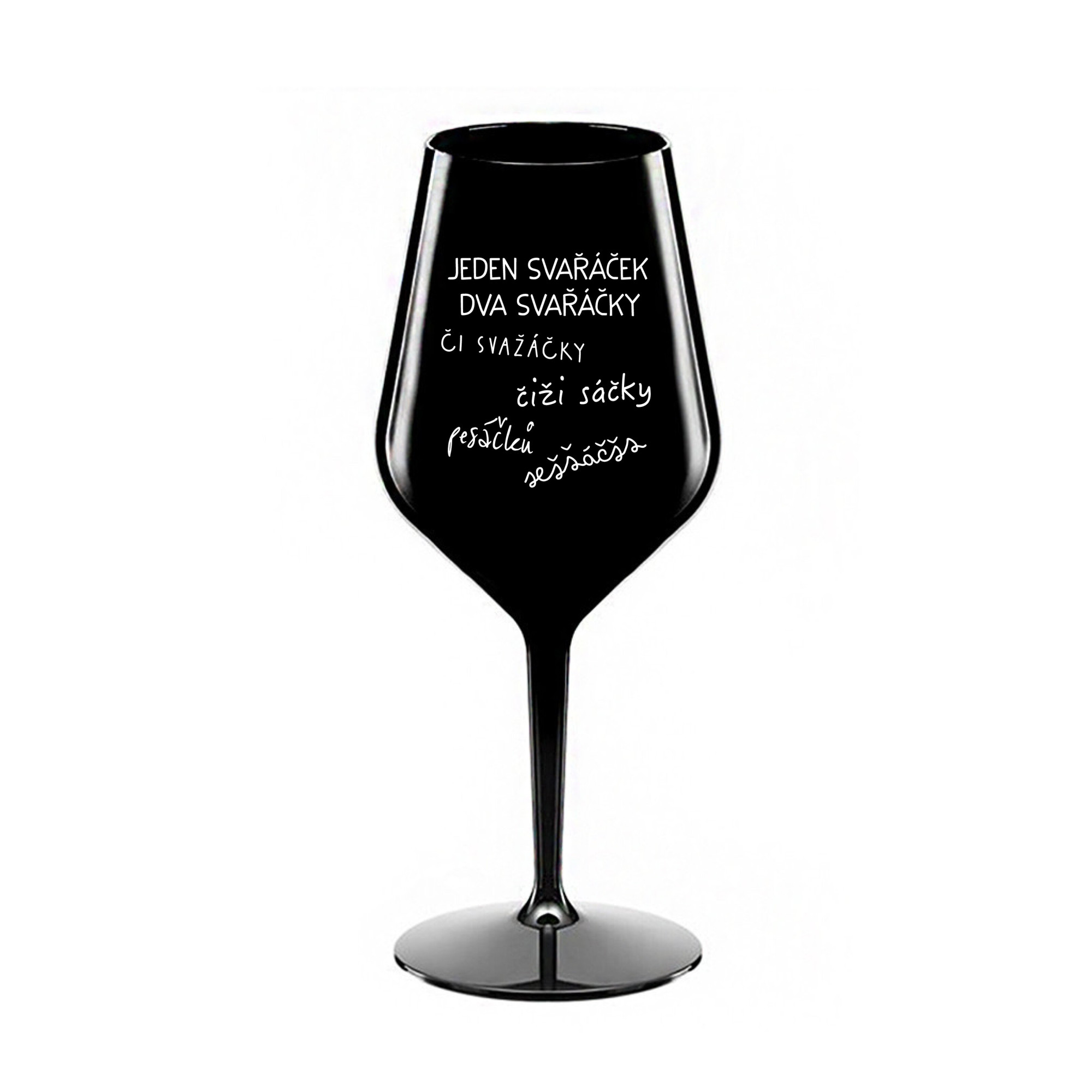 Nerozbitná černá vinná sklenice s motivem SVAŘÁČEK je skvělá na zahradu, pláž, výlet, piknik a parádu udělá i při kempování. Jelikož je vyrobená z kvalitního polykarbonátu je de facto nerozbitná. Je to luxusní kousek, s nímž si víno můžete vychutnat prostě kdekoliv. Mají ergonomický tvar, který příjemně padne do ruky a protože je lehká, usnadňuje to její přenášení. Je snadno skladovatelná a lehce se čistí. Díky svému designu si s ní můžete vychutnat doopravdy kdekoliv bezproblémové pití výborného vína. Materiál PP. Vyrobené s láskou v ČR