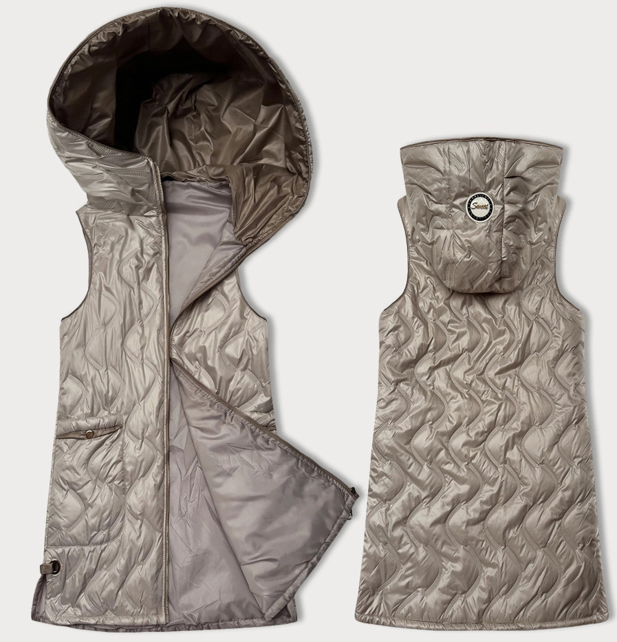 Věnujte prosím pozornost při výběru velikosti dle velikostní tabulky uvedené níže. Velikosti neodpovídají běžně nošené konfekci. Vesta s kapucí Vesta má jednoduchý střih, je lehce zateplená, má dvě kapsy bez zapínání a zapíná se zlatým zipem. Model má délku pod boky. Složení: 100 % polyester. Vesta má menší velikost, než jaká je uvedená na štítku. Při výběru se, prosím, řiďte rozměry uvedenými v tabulce velikostí.