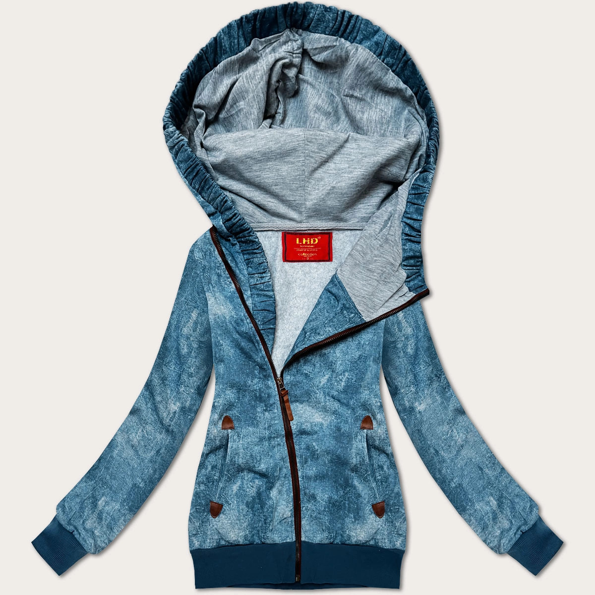 Věnujte prosím pozornost při výběru velikosti dle velikostní tabulky uvedené níže. Velikosti neodpovídají běžně nošené konfekci. Mikina s kapucí Mikina je vypasovaná, má dvě kapsy a zapíná se zipem. Model má kapuci, kterou není možné odepnout. Mikina je olemovaná stahovacími lemy a má délku k bokům. Složení: 65 % bavlna, 35 % polyester.