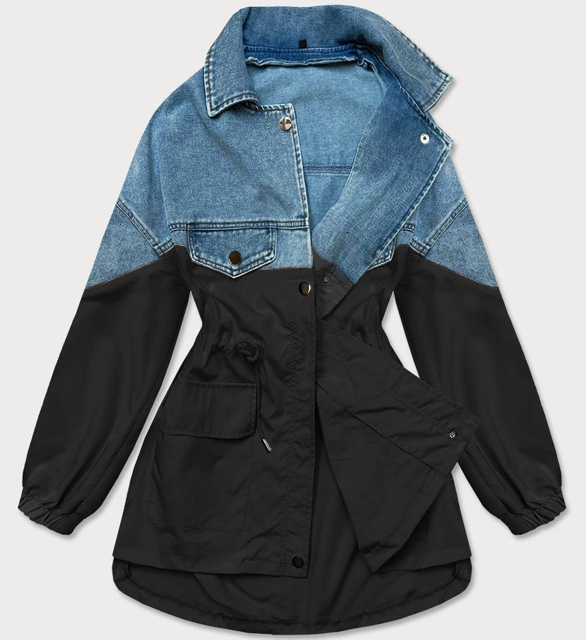 Věnujte prosím pozornost při výběru velikosti dle velikostní tabulky uvedené níže. Velikosti neodpovídají běžně nošené konfekci. Džínová bunda s límcem Bunda má volný střh a délku k bokům. Model má dvě kapsy a zapíná se zipem a panelem s patentkami. Na koncích rukávů jsou gumy. V pase je stahují šňůrka. Složení: 100 % bavlna + 100 % polyester. Velikost Šířka v podpaží (x2) Šířka na spodním okraji (x2) Délka měřená od ramene Délka rukávu měřená od ramene XS (34) 64 67 63 43 S (36) 66 69 64 43 M (38) 68 71 65 44 L (40) 70 73 66 44 XL (42) 72 75 67 45