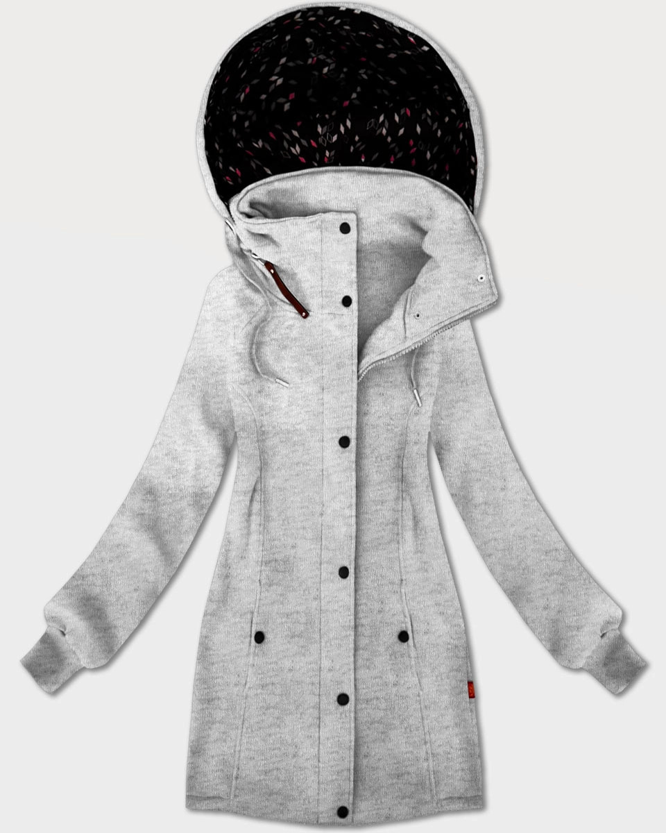 Světle šedá dlouhá dámská rozepínací mikina s kapucií LHD (AMG-693A) odstíny šedé L (40)