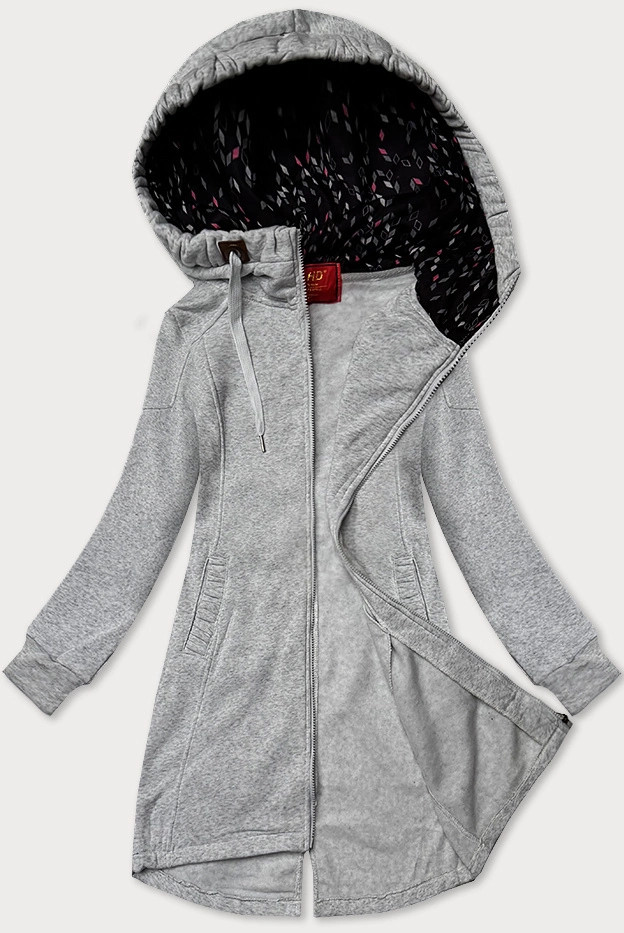 Světle šedá dlouhá dámská rozepínací mikina s kapucií LHD (AMG-693A) odstíny šedé XL (42)