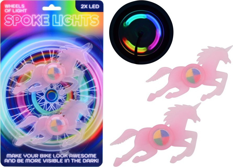 Světlo LED do kola Jednorožec – umístěty si do výpletu kola LED světlo ve tvaru Jednorožce. Vaše kolo bude vypadat skvěle a v šeru zvíší vaši vidělnost. 2 ks v balení.