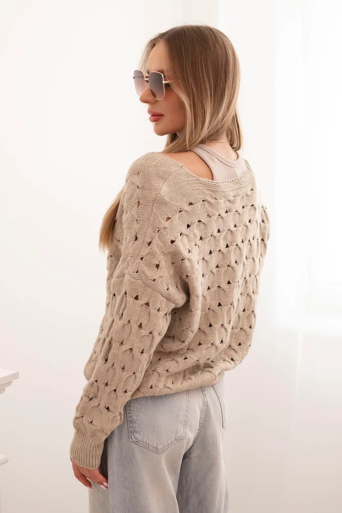 Svetr dámský ačurový s dekoltem V a zlatými knoflíky tmavě béžový UNI
