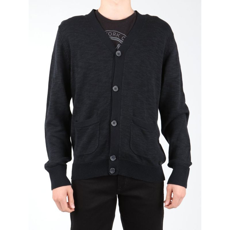 Pánský svetr s dlouhými rukávy a zapínáním na knoflíky. 2 boční kapsy. Díky klasickému vzhledu a univerzální barvě se tento model hodí ke každému oblečení. Materiál 79 % bavlna 21 % len