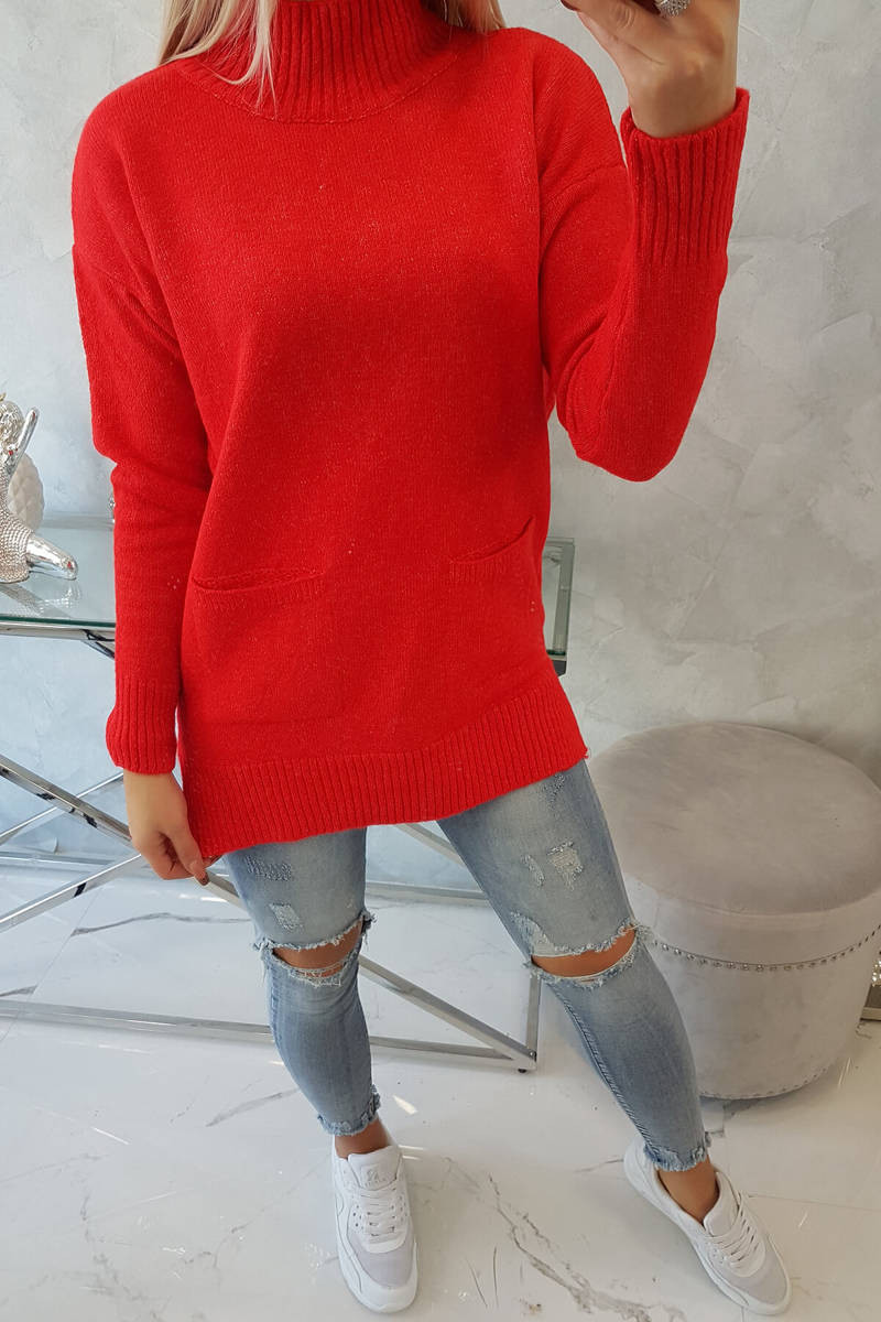 Představujeme vám módní svetr. Svetr má stojatý límec. Dvě kapsy na přední straně. Svetr nošený přes hlavu. Klasický střih ideální pro jakýkoli zimní vzhled. Hřejivé a příjemné na dotek. Svetr je vyroben z vysoce kvalitního materiálu. Velikost je univerzální a vyhovuje dámám ve velikostech M, L, XL. Materiálové složení: 70 % vlny, 30% akryl Rozměry: Šířka pod pažemi: 50 cm Délka rukávu od podpaží: 47 cm Celková délka vpředu: 74 cm/vzadu: 80 cm Hmotnost: 350 g