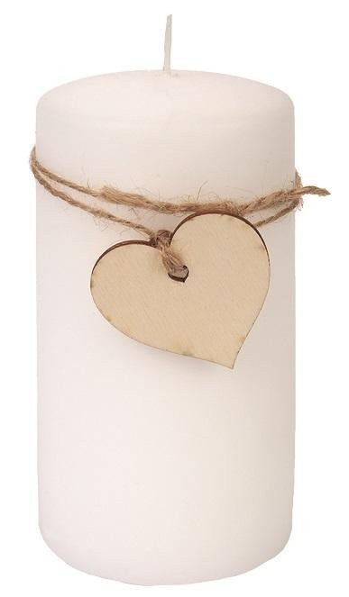 Svíčka bílá s dřevěným srdcem válec 7 x 14 cm, 48 hodin