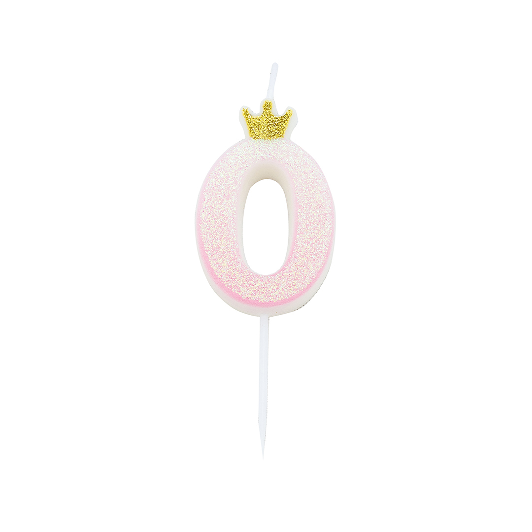 Svíčka číslo 0 růžová s korunkou a glitrem 9,5 cm Svíčka číslo 0 růžová s korunkou a glitrem 9,5 cm