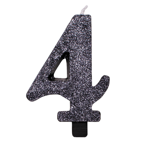 Svíčka číslo 4 černá s glitrem 9,5 cm Narozeninová oslava bez dortu? To určitě ne! A na každý dort patří dortové svíčky, ať je může oslavenec sfouknout a něco si přát. Proto právě u nás najdete nejširší nabídku narozeninových svíček na trhu. Samozřejmě můžete místo svíčky na dort zvolit dortovou fontánu. Při přípravě slavnostního dortu jistě oceníte nabídku pomůcek na pečení. Pokud máte raději muffiny, můžete si vybrat z mnoha variant košíčků na muffiny. Při výzdobě slavnostního stolu doporučujeme využít stolové šerpy. Jsou opravdu elegantní a v mžiku vykouzlí slavnostní atmosféru. Samozřejmě nesmíte zapomenout na svíčky, ubrousky anebo na kapsy na příbory.