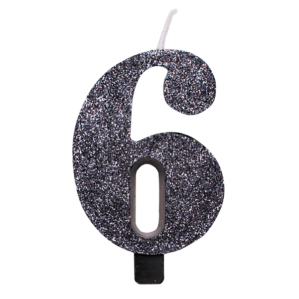 Svíčka číslo 6 černá s glitrem 9,5 cm Narozeninová oslava bez dortu? To určitě ne! A na každý dort patří dortové svíčky, ať je může oslavenec sfouknout a něco si přát. Proto právě u nás najdete nejširší nabídku narozeninových svíček na trhu. Samozřejmě můžete místo svíčky na dort zvolit dortovou fontánu. Při přípravě slavnostního dortu jistě oceníte nabídku pomůcek na pečení. Pokud máte raději muffiny, můžete si vybrat z mnoha variant košíčků na muffiny. Při výzdobě slavnostního stolu doporučujeme využít stolové šerpy. Jsou opravdu elegantní a v mžiku vykouzlí slavnostní atmosféru. Samozřejmě nesmíte zapomenout na svíčky, ubrousky anebo na kapsy na příbory.