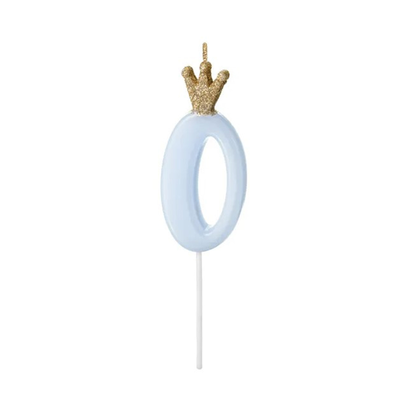 Svíčka dortová modrá s korunkou číslo 0 - Albi