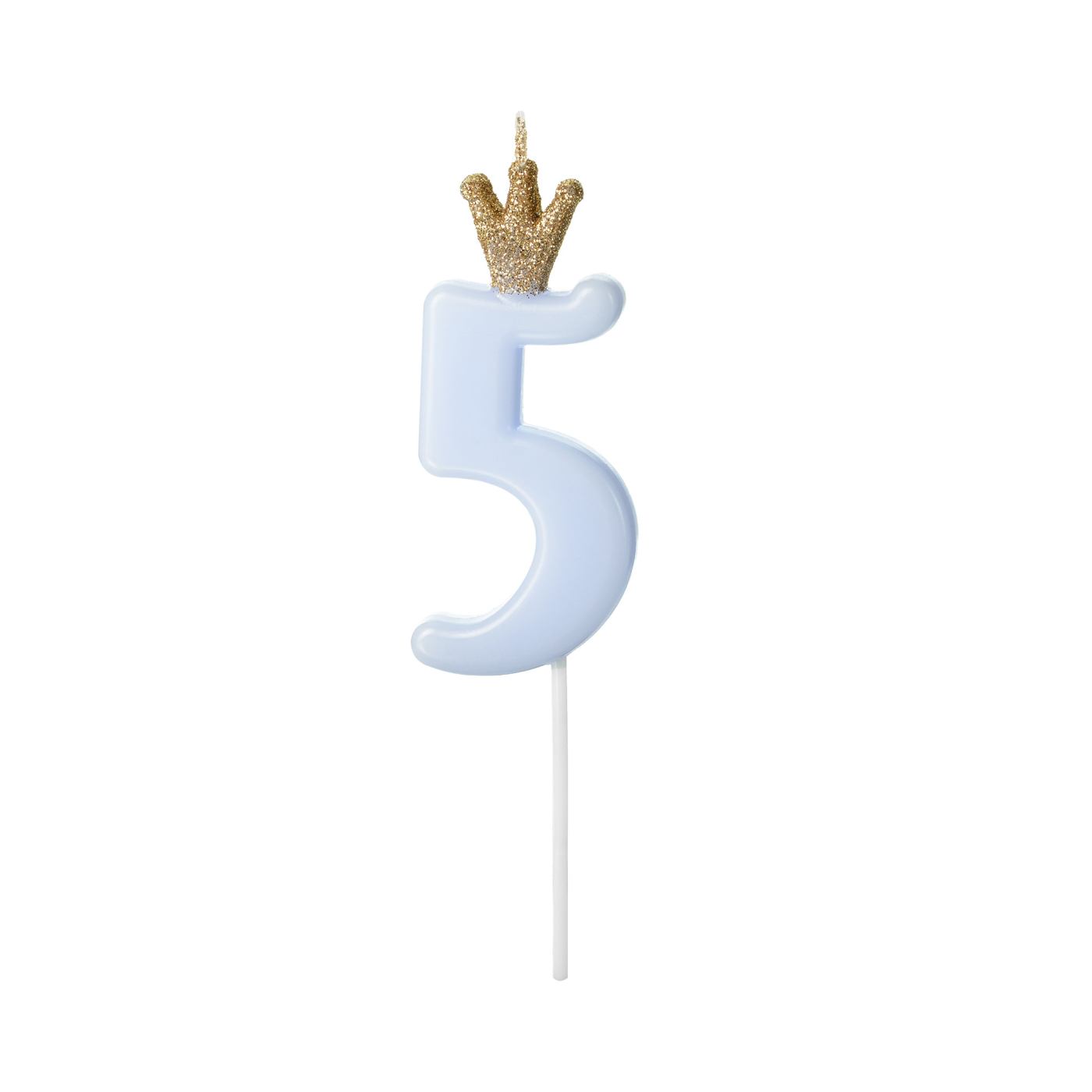 Svíčka dortová modrá s korunkou číslo 5 - Albi