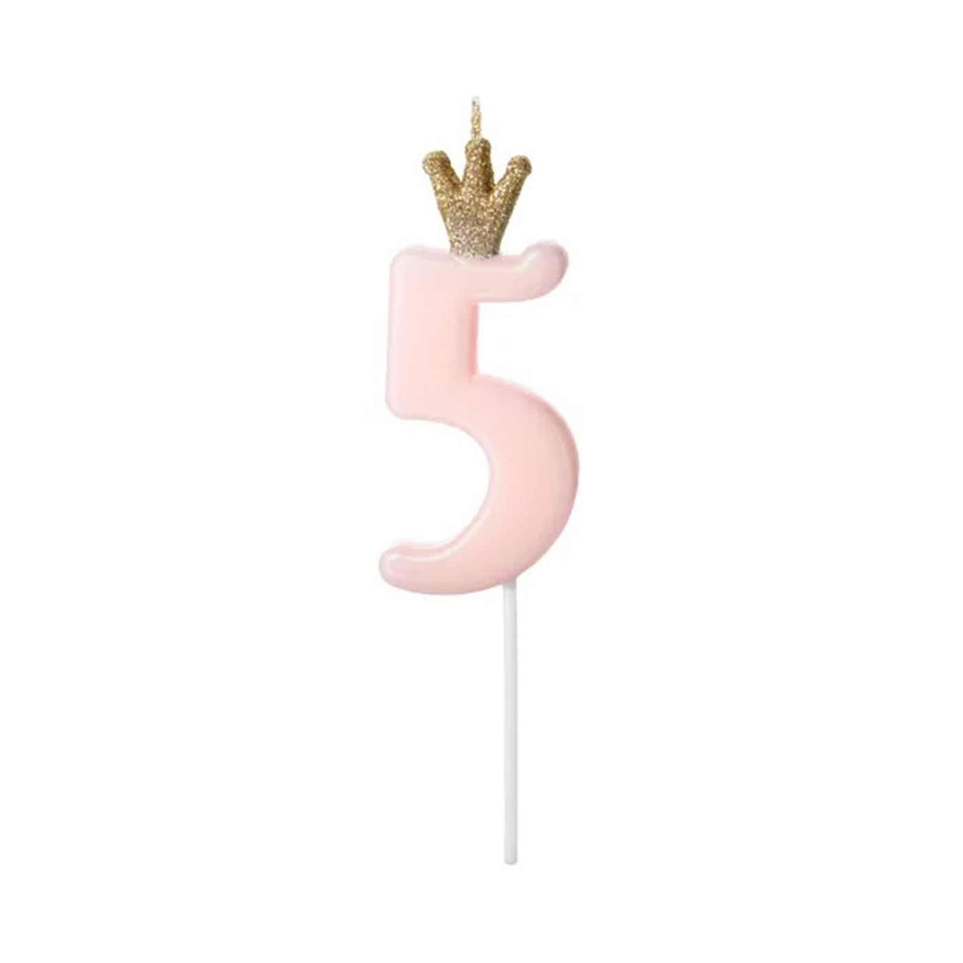 Svíčka dortová růžová s korunkou číslo 5 - Albi