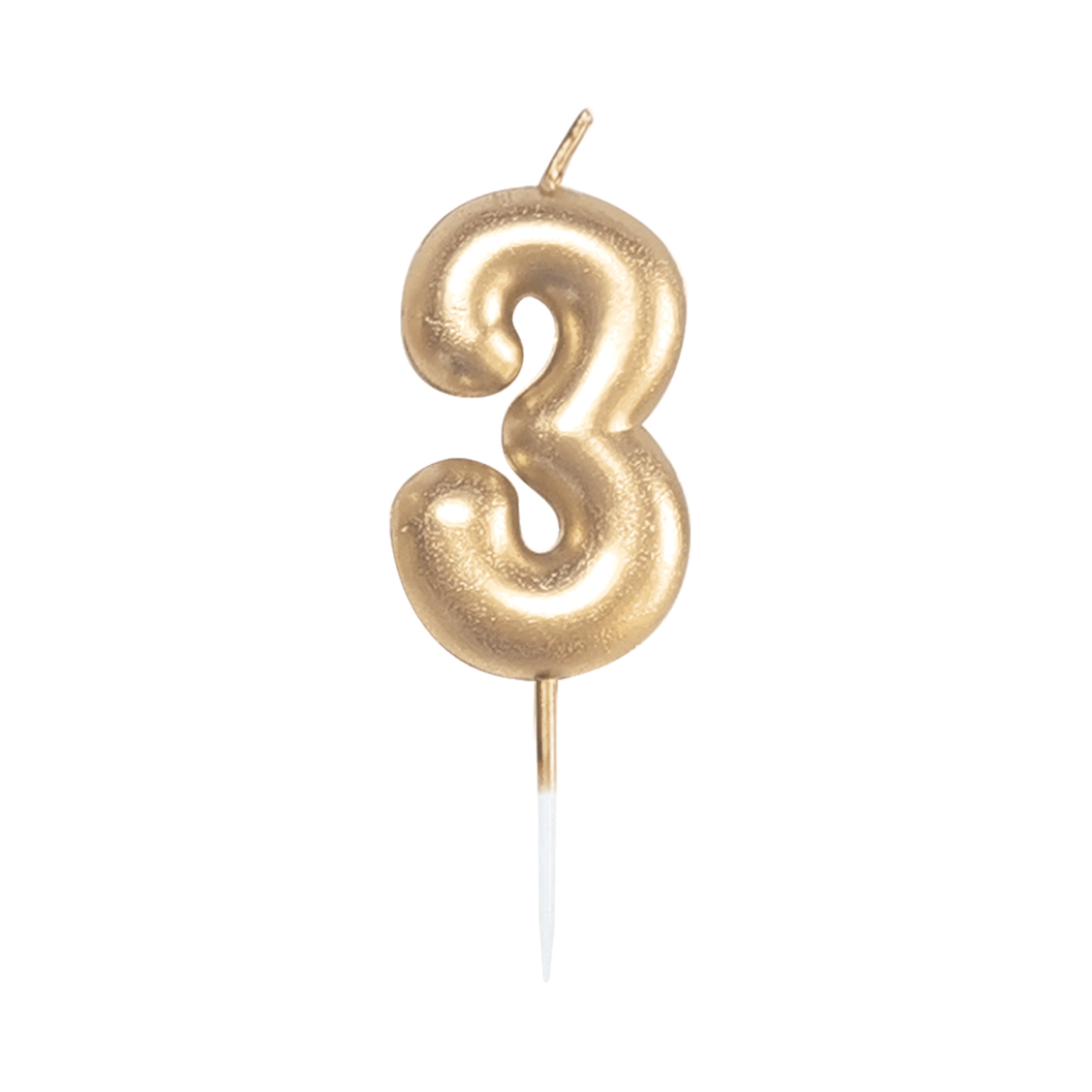 Dortová svíčka ve tvaru číslice v elegantní zlaté barvě. Výška svíčky: výška čísla 5 cm (celková výška včetně tyčinky 8 cm) Obsah balení: 1 ks svíčky na plastové tyčce