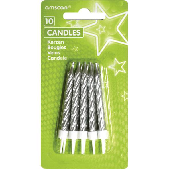 Svíčky dortové 6,3cm spirálové, stříbrné 10ks - Amscan