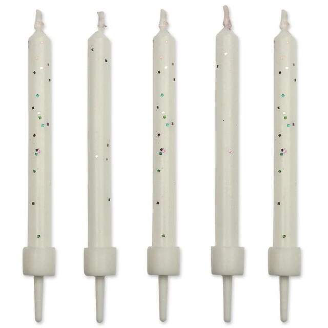 Svíčky dortové s držáky, sada 10ks, 55mm - bílé, třpytky