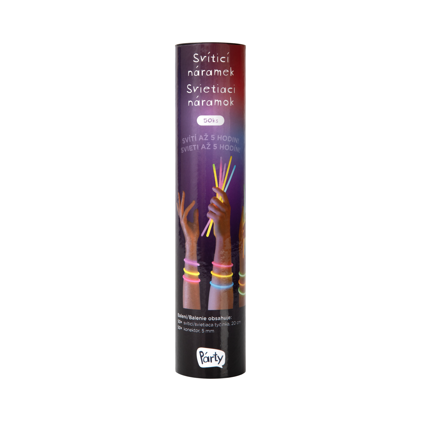 Sada 50 kusů svítících náramků v mixu barev, se kterou rozzáříte každou párty! Svítící tyčinky vydrží svítit až 5 hodin! Balení obsahuje: 50 × svítící tyčinka (20 cm) a 50 × konektor (5 mm) Použití: Tyčinku ohýbejte, lámejte a třeste s ní. Může trvat několik okamžiků, než dosáhne plného jasu. Upozornění: Uchovávejte svítící tyčinku v původním obalu, dokud nebude připravena k použití. Vnitřní tyčinka obsahuje sklo. Neprořezávejte ani nepropichujte povrch svítící tyčinky. Chemické látky ve výrobku jsou nehořlavé, ale mohou trvale znečistit nábytek, oblečení a koberce. Po použití svítící tyčinku zlikvidujte v souladu se zákonem o odpadech. Nenechávejte svítící tyčinky na přímém slunci ani je nevystavujte vysokým teplotám. Při zasažení kůže nebo očí důkladně vypláchněte vodou. Složky nezpůsobí poranění očí, ale mohou způsobit dočasné potíže. Nepijte tekutinu ani ji nevkládejte do úst! Vhodné pro děti od 5 let. Doporučuje se dohled dospělé osoby.