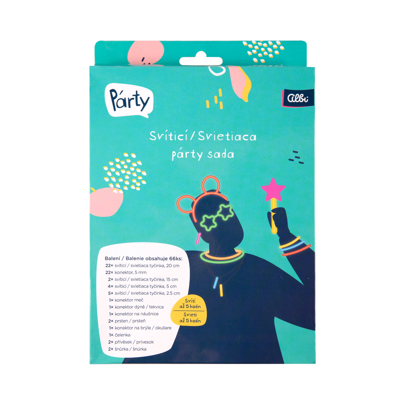 Sada 66 kusů svítících párty doplňků se kterou rozzáříte každou párty! Tyčinky různých tvarů a v mixu barev svítí ve tmě. Lze z nich vyrobit náramky, brýle, čelenku, prsteny, náušnice a náhrdelníky. Jsou vhodné pro venkovní a večerní aktivity. Svíticí tyčinky vydrží svítit až 5 hodin! Balení obsahuje: 22× svíticí tyčinka (20 cm), 22× konektor (5 mm), 2× svíticí tyčinka (15 cm), 4× svíticí tyčinka, 5 cm, 5× svíticí tyčinka (2,5 cm), 1× konektor meč, 1× konektor dýně, 1× konektor na náušnice, 2× prsten, 1× konektor na brýle, 1× čelenka, 2× přívěsek a 2× šňůrka Použití: Tyčinku ohýbejte, lámejte a třeste s ní. Může trvat několik okamžiků, než dosáhne plného jasu. Upozornění: Uchovávejte svíticí tyčinku v původním obalu, dokud nebude připravena k použití. Vnitřní tyčinka obsahuje sklo. Neprořezávejte ani nepropichujte povrch svíticí tyčinky. Chemické látky ve výrobku jsou nehořlavé, ale mohou trvale znečistit nábytek, oblečení a koberce. Po použití svíticí tyčinku zlikvidujte v souladu se zákonem o odpadech. Nenechávejte svíticí tyčinky na přímém slunci ani je nevystavujte vysokým teplotám. Při zasažení kůže nebo očí důkladně vypláchněte vodou. Složky nezpůsobí poranění očí, ale mohou způsobit dočasné potíže. Nepijte tekutinu ani ji nevkládejte do úst! Vhodné pro děti od 5 let. Doporučuje se dohled dospělé osoby.
