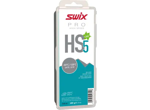 Swix High Speed 5 je tréninkový skluzný vosk na sníh o teplotě od -10 °C do -18 °C. Lze jej použít pro tréninkové účely, případně také jako základní vrstvu pod závodní prášky a urychlovače. Vosk HS05 nahrazuje vosk LF05X.