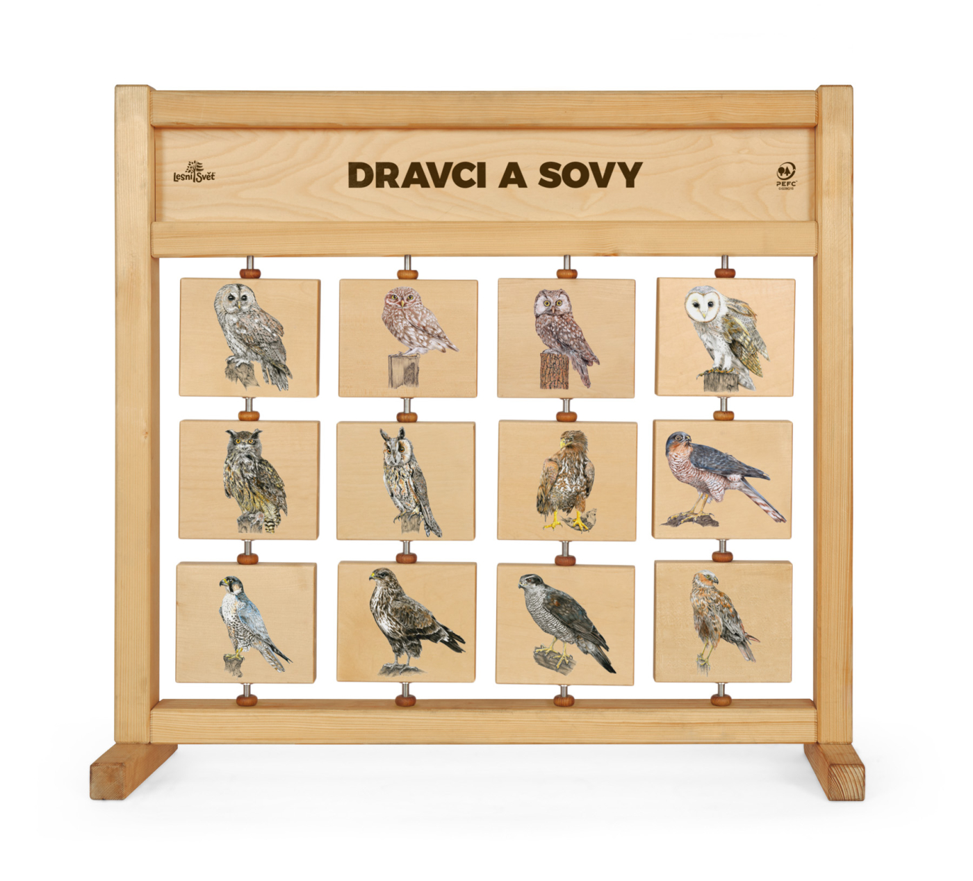 PRVEK JE URČENÝ DO VNITŘNÍCH UČEBEN A INTERIÉRU Stolní tabulky poznání vyrábí u nás v dílně české ruce z kvalitního českého certifikovaného dřeva. Na tabuli najdete 12 otočných tabulek s originálními kresbami. Rozměry prvku: (š) 80 × (v) 75 × 25 cm. Zabaleno v kartonové krabici na míru. Autorem kreseb jsou čeští ilustrátoři, obrázky jsou chráněny autorskými právy. Stolní tabulky poznání zábavnou a hravou formou seznamuje děti i dospělé s přírodou. Nožičky lze pootočit, aby bylo možné prvek pohodlně uskladnit třeba do kufru auta. Lesní svět = značka s ekologickým certifikátem udržitelného hospodářství PEFC. Všechny výrobky jsou vyrobeny s ohledem na životní prostředí.