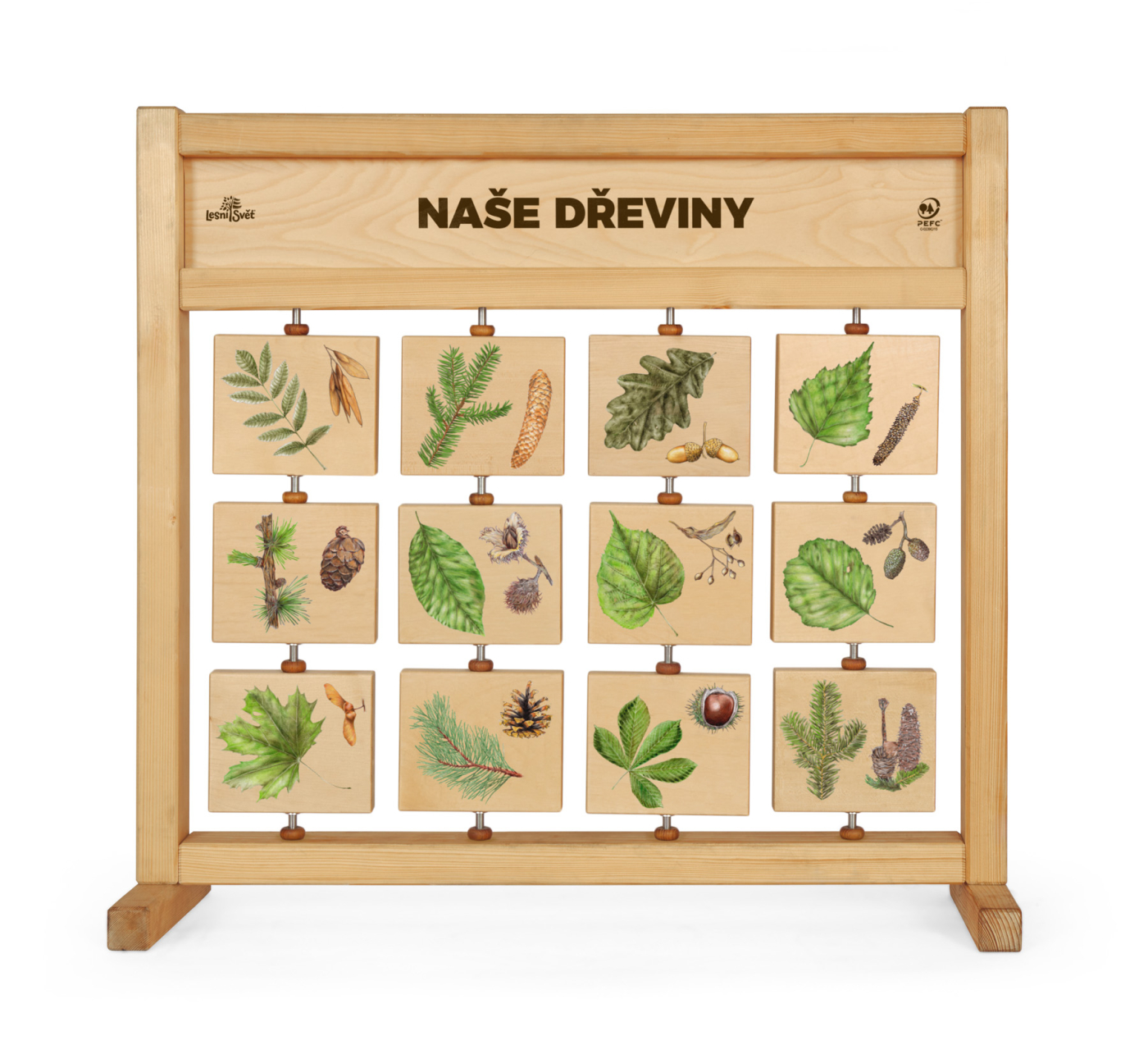 PRVEK JE URČENÝ DO VNITŘNÍCH UČEBEN A INTERIÉRU Stolní tabulky poznání vyrábí u nás v dílně české ruce z kvalitního českého certifikovaného dřeva. Na tabuli najdete 12 otočných tabulek s originálními kresbami. Rozměry prvku: (š) 80 × (v) 75 × 25 cm. Zabaleno v kartonové krabici na míru. Autorem kreseb jsou čeští ilustrátoři, obrázky jsou chráněny autorskými právy. Stolní tabulky poznání zábavnou a hravou formou seznamuje děti i dospělé s přírodou. Nožičky lze pootočit, aby bylo možné prvek pohodlně uskladnit třeba do kufru auta. Lesní svět = značka s ekologickým certifikátem udržitelného hospodářství PEFC. Všechny výrobky jsou vyrobeny s ohledem na životní prostředí.