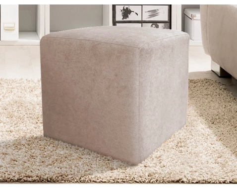 Taburet ve tvaru kostky o velikosti 40x40 cm je očalouněn látkou v barvě šedo-béžová taupe. Díky lehké konstrukci lze snadno přenášet.