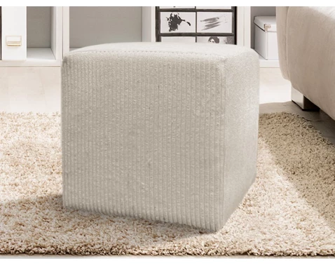 Taburet ve tvaru kostky o velikosti 40x40 cm je očalouněn měkkoučkou strukturovanou látkou v barvě světle béžová. Díky lehké konstrukci lze snadno přenášet.