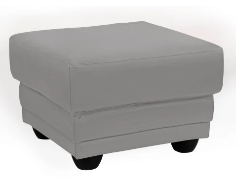 Taburet s nadýchaným vypolstrováním a zaoblenými tvary. Očalouněn světle šedou látkou v optice broušené kůže, ideální do moderní i klasické interiéry.