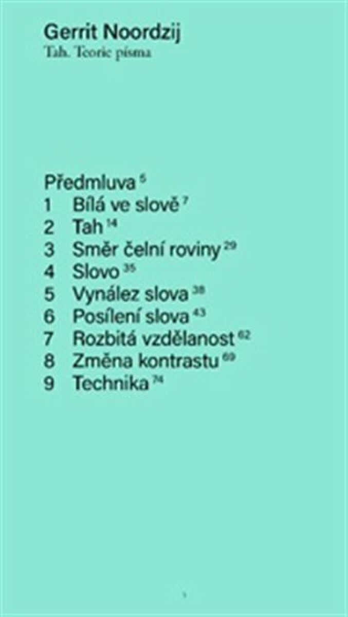 Publikace De streek: Theorie van het schrift vyšla poprvé v roce 1985. Noordzijův krátký a svižný text, ilustrovaný jeho vlastními diagramy a příklady, je silným výkladem teorie psaní (v jeho vizuální podobě). Zahrnuje jak západní modely a příklady, tak i mimoevropské reference. Noordzij vychází ze základních principů a svou pozornost věnuje nejprve prostoru kolem písmen: bílému místu, které slouží k definování a rozlišení toho, co které písmeno je. Do nejmenších podrobností popisuje, jak mohou vznikat tahy. Používá přitom jednoduché geometrické pojmy, o které své popisy opírá. Noordzij si ve své odborné praxi brzy uvědomil možnosti, které do návrhu písma přináší počítač. Povzbuzoval své studenty, aby se nezaměřovali pouze na pera a jejich stopy, ale aby si osvojili i kritický přístup k tvorbě digitálních nástrojů. Kniha tedy zdaleka není dílem o umělecké kaligrafii a krásných tvarech. Je spíše systematickým popisem písmen a toho, jak vznikají při psaní - s využitím kterýchkoli dostupných nástrojů a technologií. Překlad z nizozemštiny Magda de Bruin Hüblová. Grafika Kateřina Šuterová.