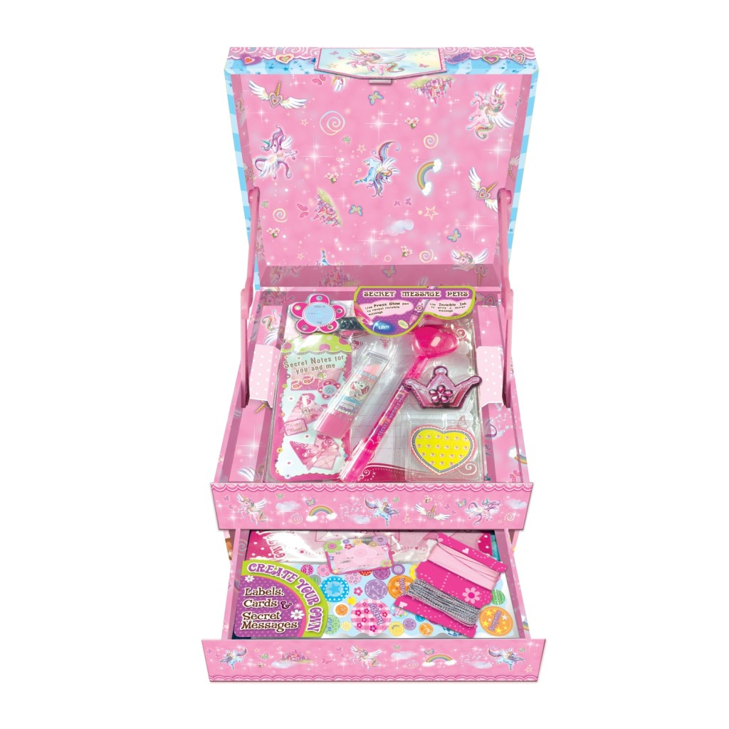 Krásná dopisní sada pro malé spisovatele, kteří si mohou zapisovat nápady nebo kreslit a zdobit ozdobami své dopisní výtvory. Sada je v krabičce s krásným designem, obsahuje i ozobné pero na baterie 3xLR41 (jsou součástí balení). Vhodné pro děti od 6ti let.