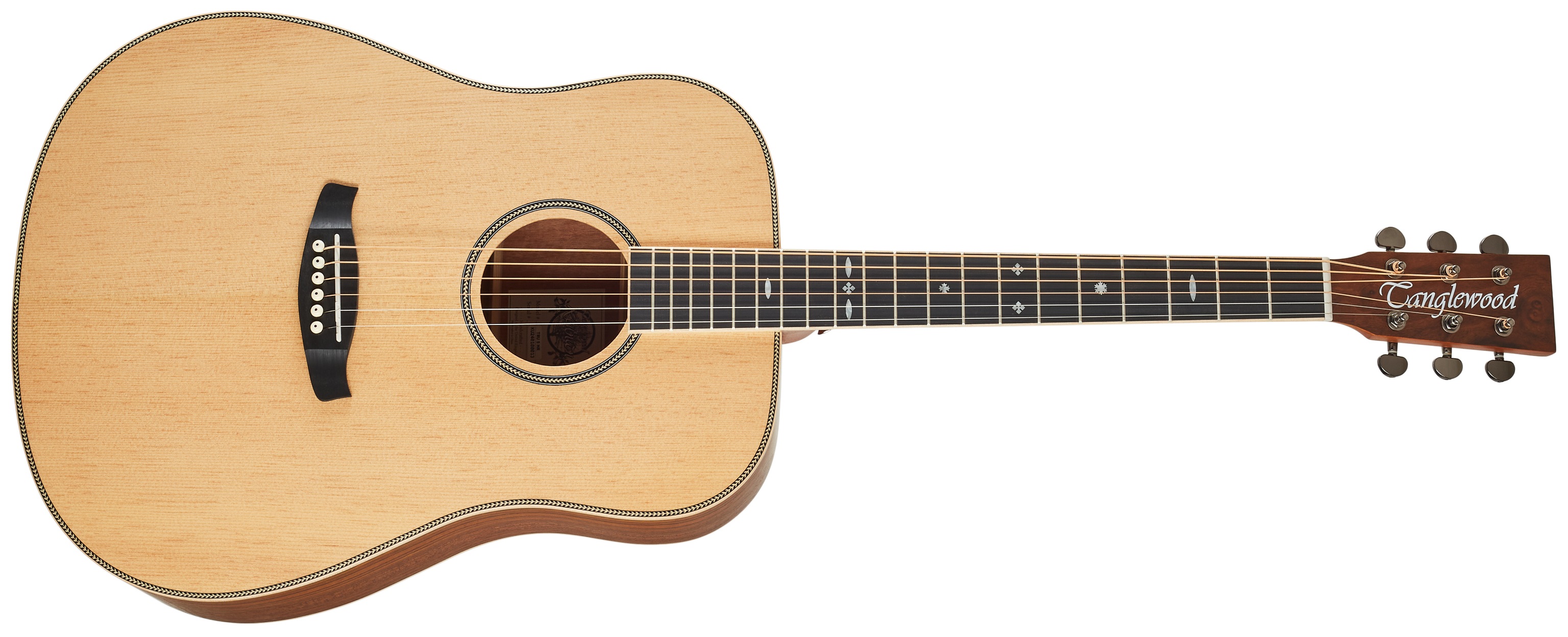 Akustická kytara Zboží jeví drobné známky používání vlivem krátkodobého vystavení na prodejně. Jinak je kytara v pořádku a plně funkční. Britská značka Tanglewood představuje cenově dostupnější akustické kytary v retro i moderních designech. TRU 5 HR je akustická kytara s velkým rezonantním tělem typu Dreadnought. Přední deska kytary je zhotovena z masivu himalájského smrku, zadní deska a luby jsou vyrobeny z exotického dřeva (Hawaiian Rainwood, překližka) s výraznou kresbou. Plochu hmatníku z kompozitního