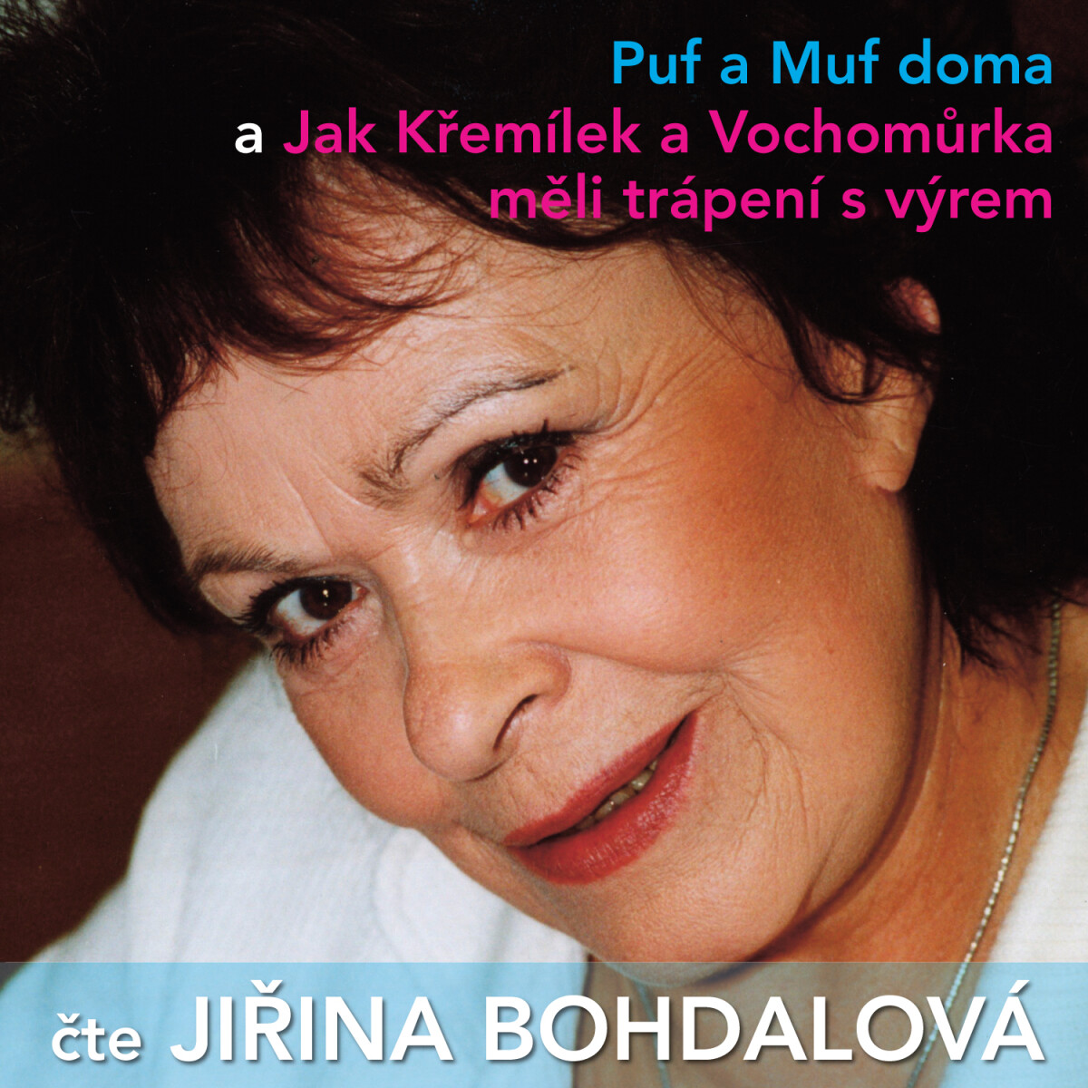 Audiokniha: Herecké umění a vyprávění Jiřiny Bohdalové spojuje dnes už trochu pozapomenuté večerníčky a příběhy o kocourech Pufovi a Mufovi a také jeden jinde neuvedený příběh lesních skřítků Křemílka a Vochomůrky.